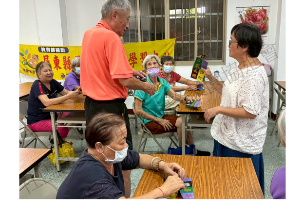 長得像骰子平面圖,動動腦動動手,嘗試摺出指定詞彙圖案,例如:「居家護理」、「延緩老化」、「預防失智」、「防跌運動」等等四個字的詞
