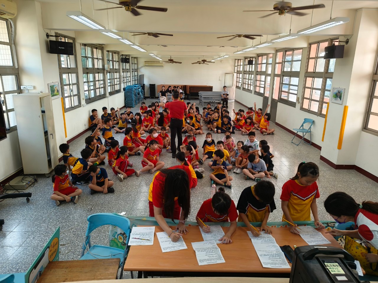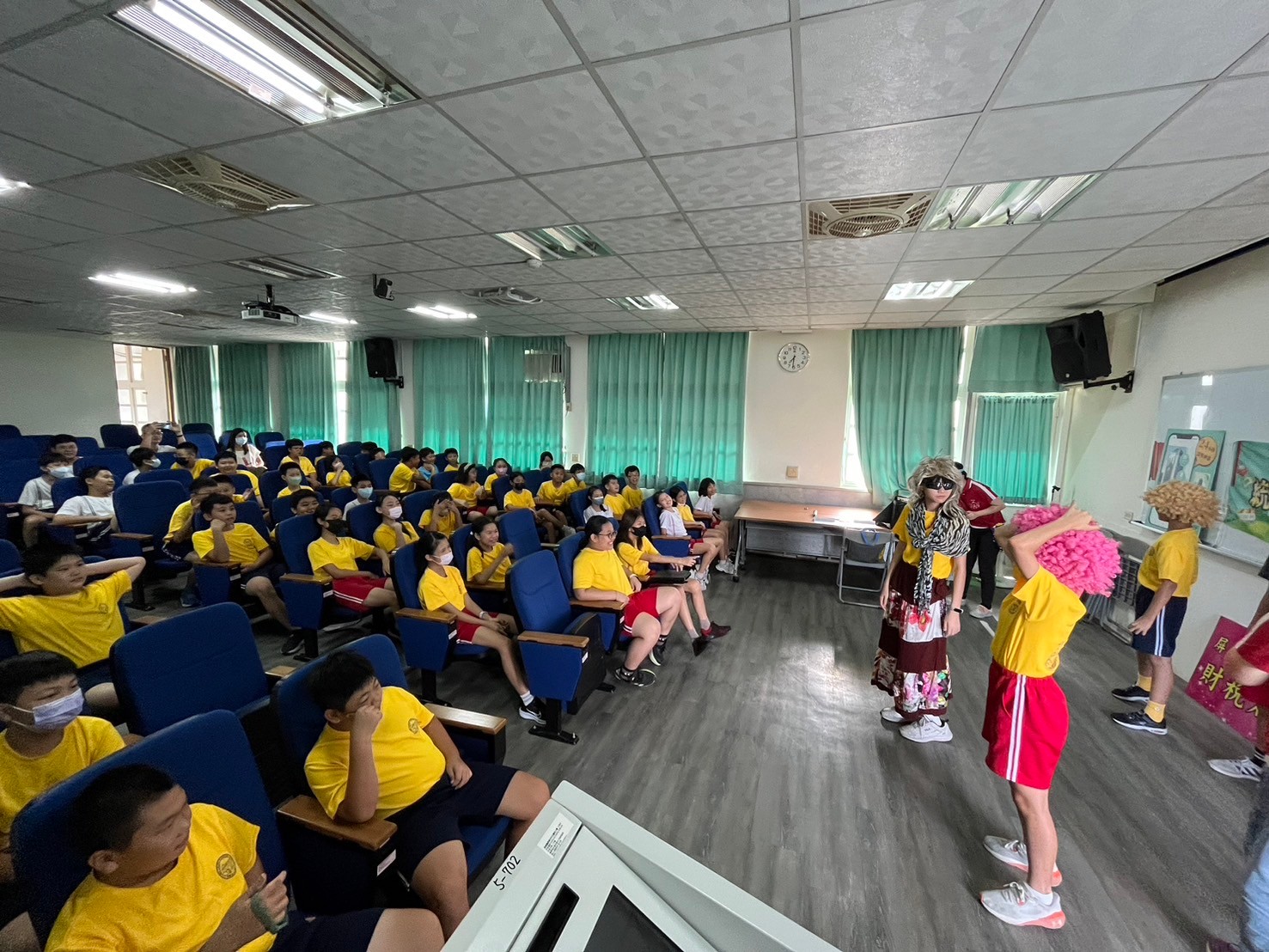 我們請五位學生當臨時演員與協助宣導進行的輔助事宜,他們把文宣看板、道具、筆等等的用完之後,都會歸於原位,而且是相當愛惜的輕輕放好收好,而上台時也是落落大方