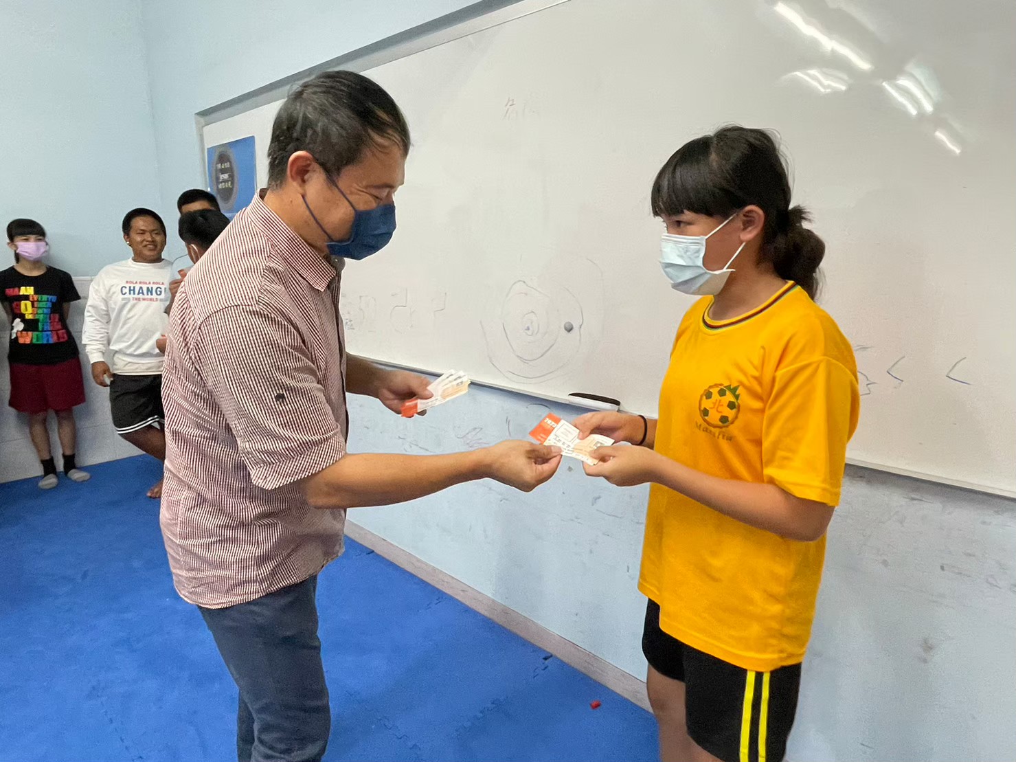 兩個月以前,我們與課輔班的學生約定,有甚麼期許自己可以改變或想做到的,在活動後做個檢視,有沒有達成當初的小約定,達成的就可以拿到兩張餐券