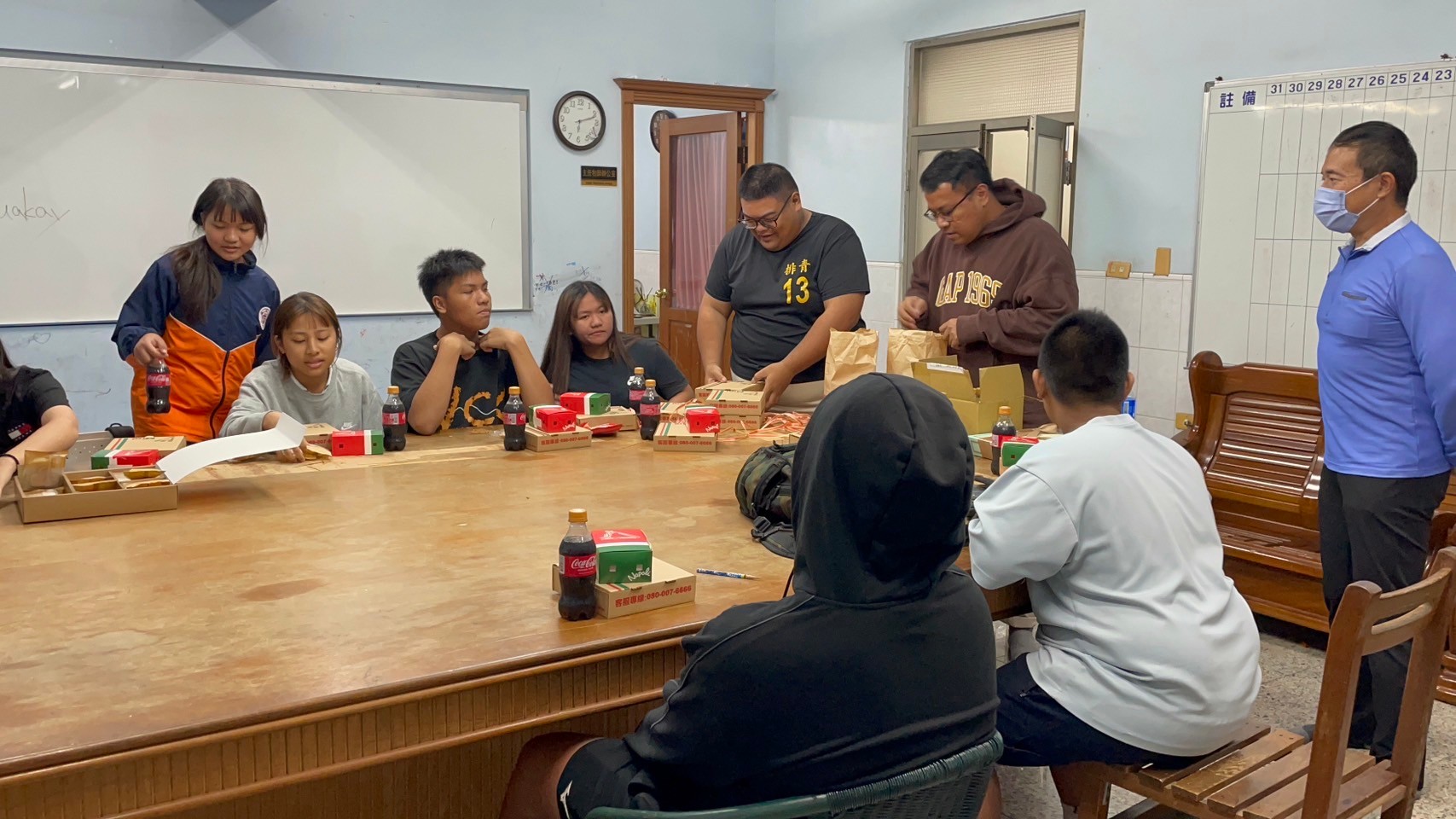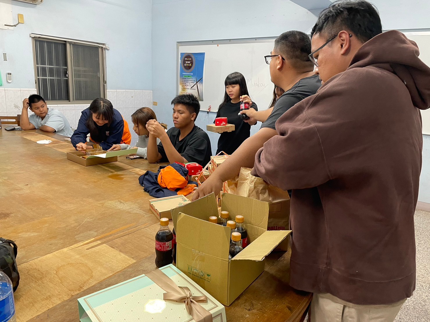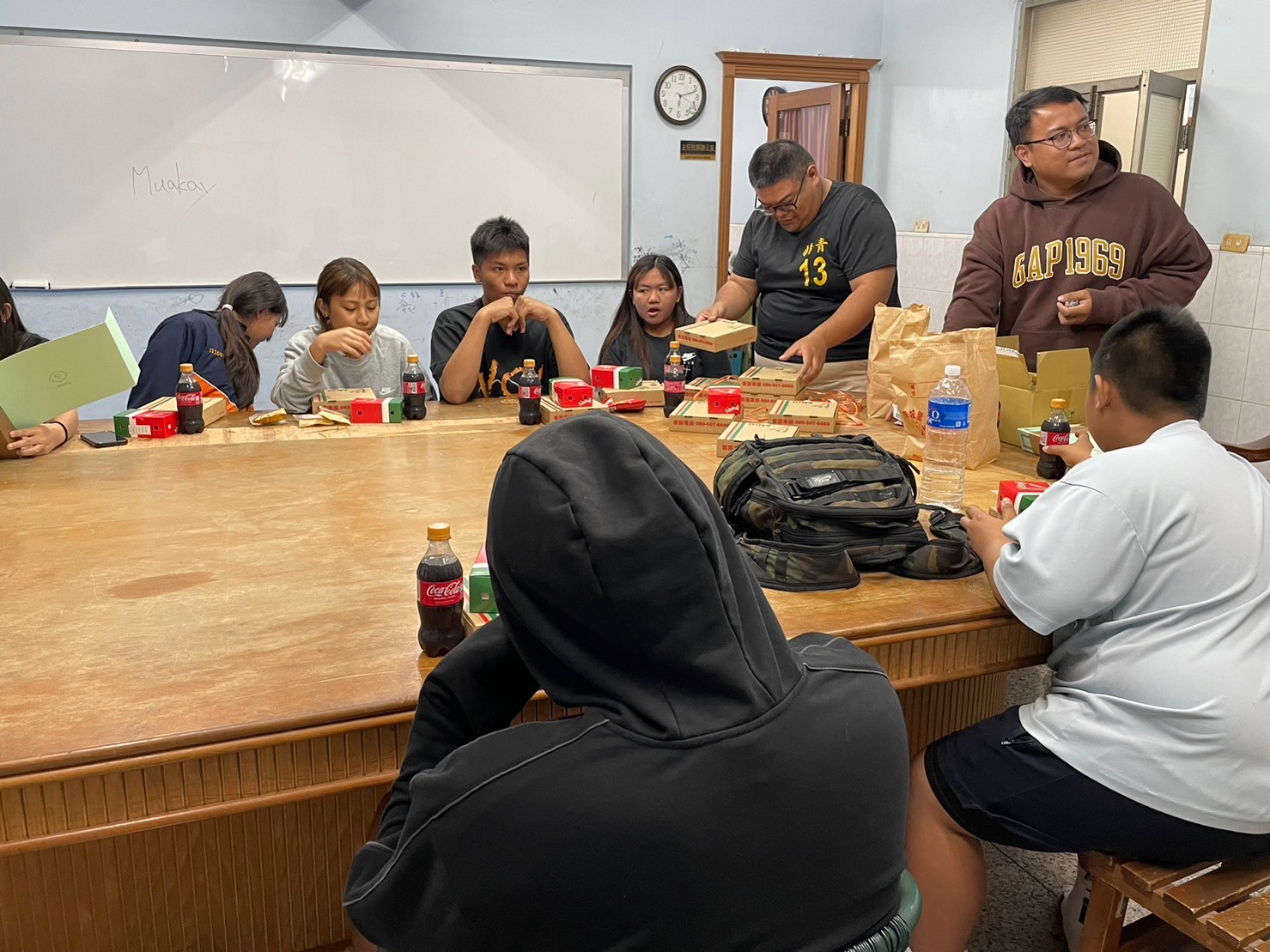 🚌在他們放學搭公車回到課輔班前,準備好這次的特別晚餐🍴我們去屏東市區外帶回來,來回就一個半小時了,算好通勤時間,這樣學童們抵達課輔班時才可以吃到熱呼呼的披薩